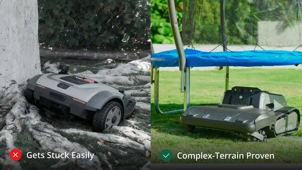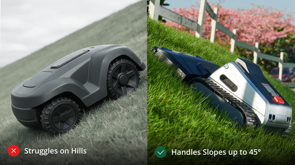 Our unique heavy-duty Track Drive System delivers confident traction on steep slopes, maintaining stable control and reliable grip while effortlessly crossing obstacles like branches, stones, and trampoline bars.